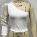 This sexy crop top is perfect for a night out! It features a one-shoulder design with gauze splicing long sleeves. Pair it with your favorite skinny jeans and high heels for a hot look!
