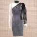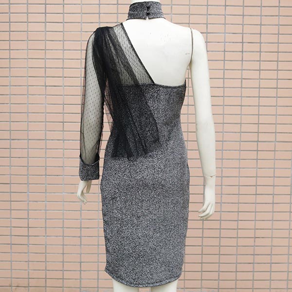 Sexy One-shoulder Gauze Spliced Long Sleeve Slim Fit Party Dress