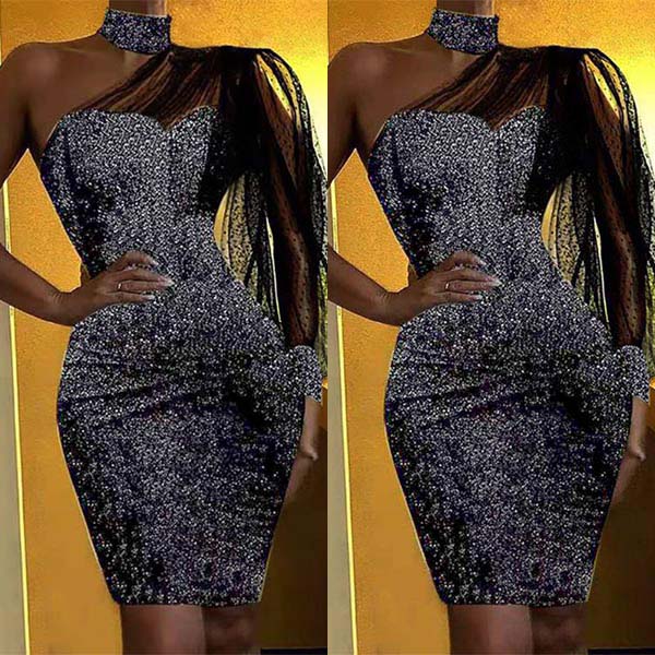 For any last-minute invitation,this little stunner can be a perfect solution. Its sexy and alluring design details like one-shoulder,gauze spliced long sleeve and unique halter design can easily help you garb more attention. When stepping into a party or gathering,you are bound to stand out in the crowd!