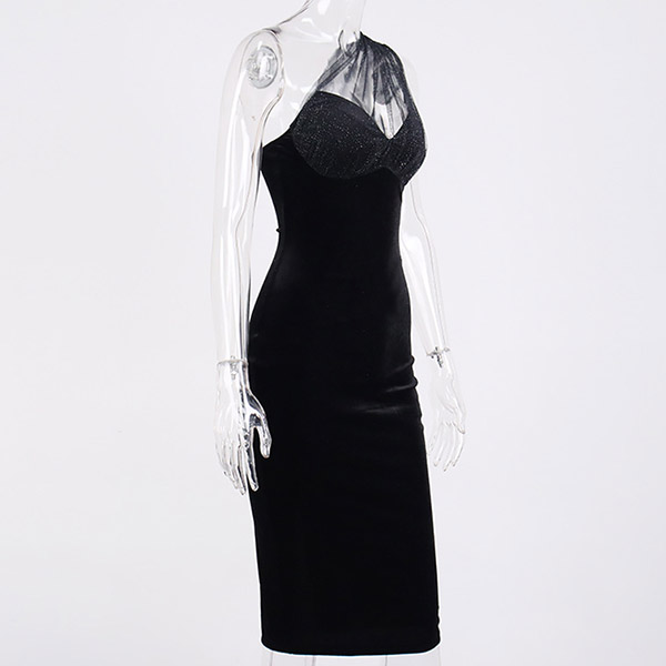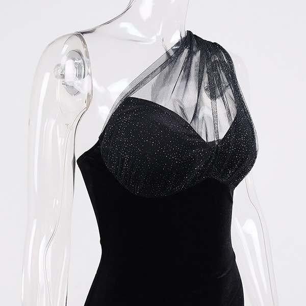 Sexy One-shoulder Gauze Spliced Sleeveless Slim Fit Party Dress