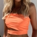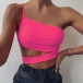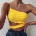 Sexy One-shoulder Hollow Out Hem Solid Color Sling Crop Top