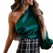 Sexy One-shoulder Lantern Sleeve Top + High Waist Plaid Skirt Two-piece Set