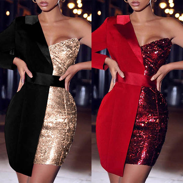 When invited to some fancy events,you can make your eyes focused on this dress. One-shoulder design makes it look so sexy and alluring,while the sequin spliced details will make this piece look more shinning and attractive. Paired with your sexy heels and elegant clutch,you are sure to be the most beautiful party girl!