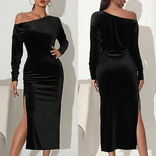 Featuring a one-shoulder design, this dress exudes confidence and allure.The dress also features a daring thigh-high slit, adding a hint of playfulness and sexiness to your look. Made from high-quality materials, it offers both comfort and style, allowing you to dance the night away with ease.