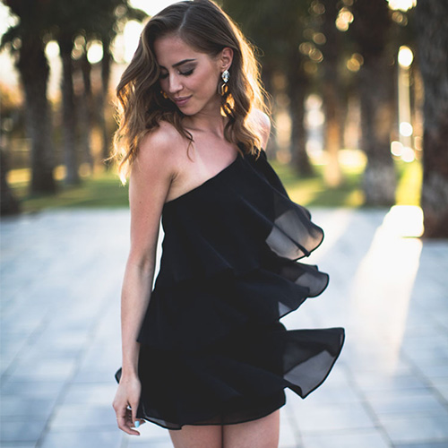 with one-shoulder and multi-layer design. It will accompany to spend a cool and wonderful summer.