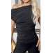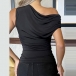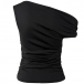 Make a bold statement with this sexy black sleeveless shirt. The one-shoulder design adds a touch of allure and sophistication, perfect for showcasing your shoulders and collarbones. The ruched detailing creates a flattering and curve-enhancing silhouette. It is perfect pair with skinny jeans or a skirt for a fashion look!