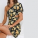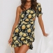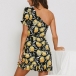 Sexy One-shoulder Short Sleeve Ruffle Hem Lemon Printed Dress