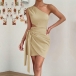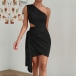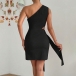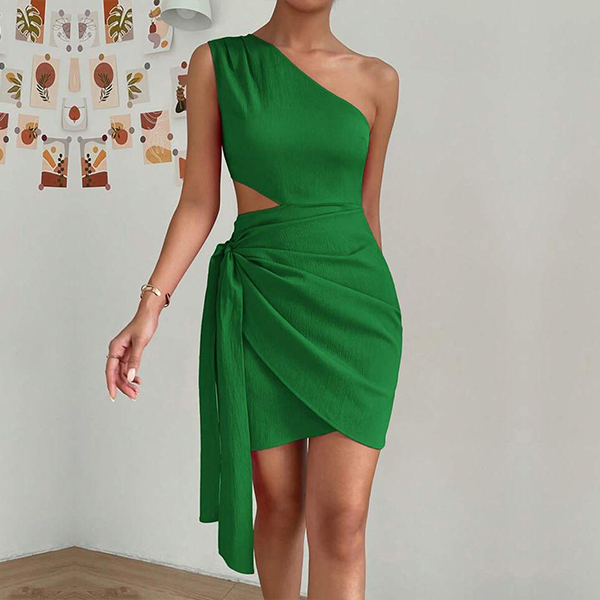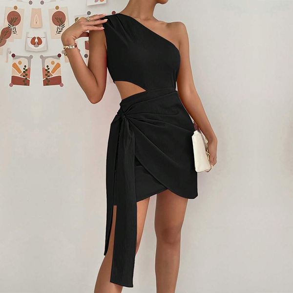 Sexy One-shoulder Side Cutout Bodycon Wrap Dress