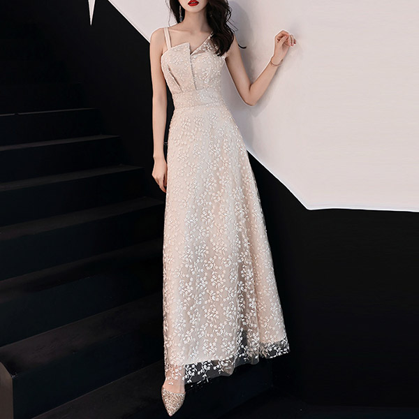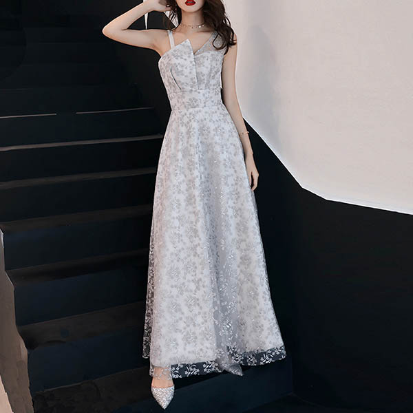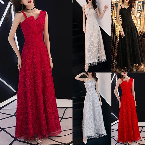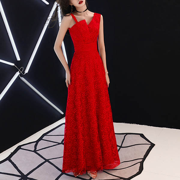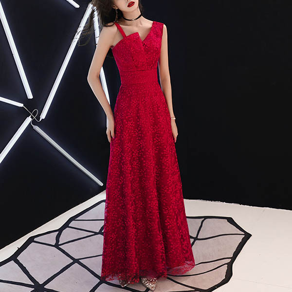 Sexy One-shoulder Sleeveless High Waist Lace Maxi Dress