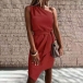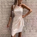 Sexy One-shoulder Sleeveless Irregular Hem Solid Color Party Dress