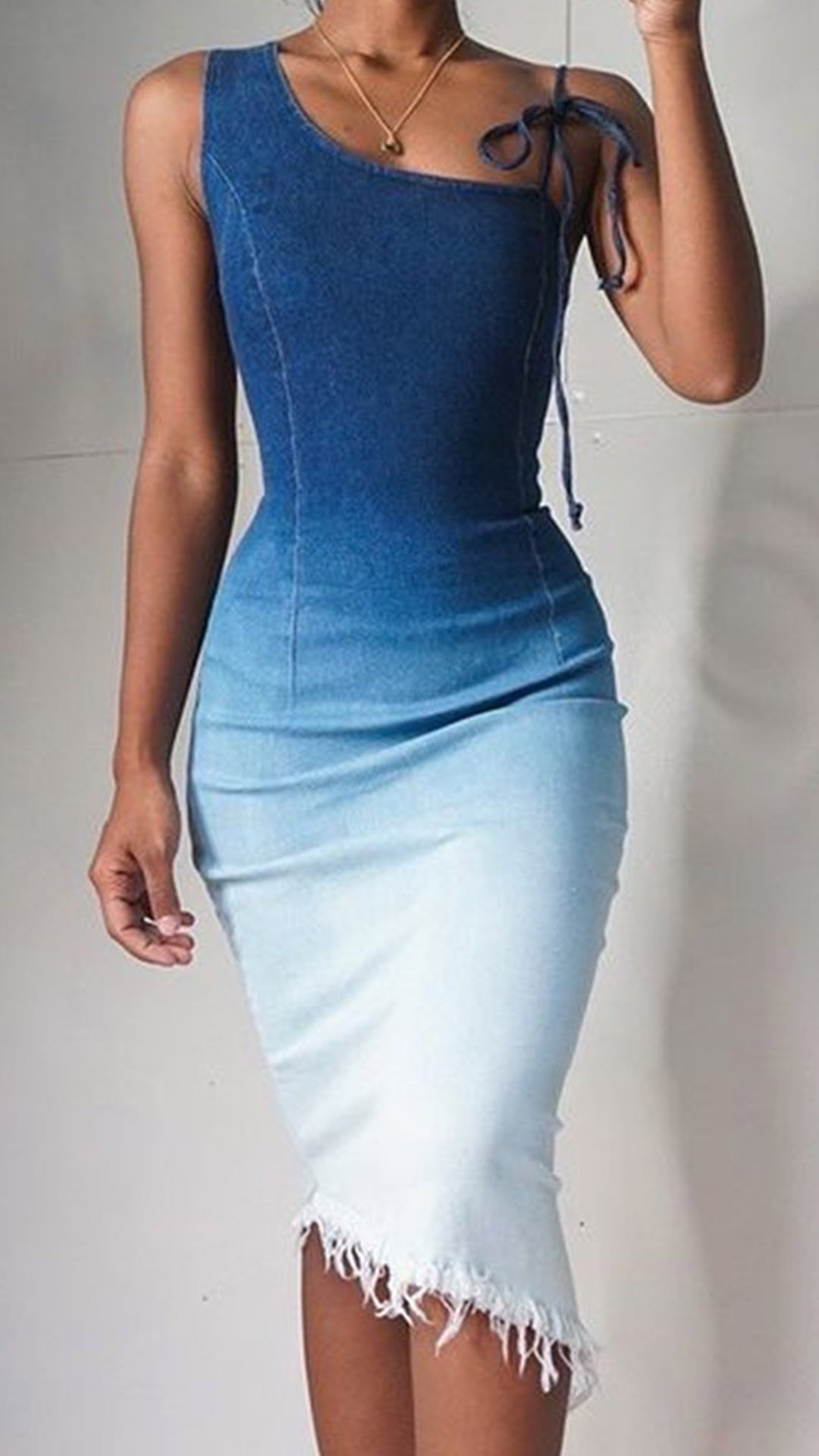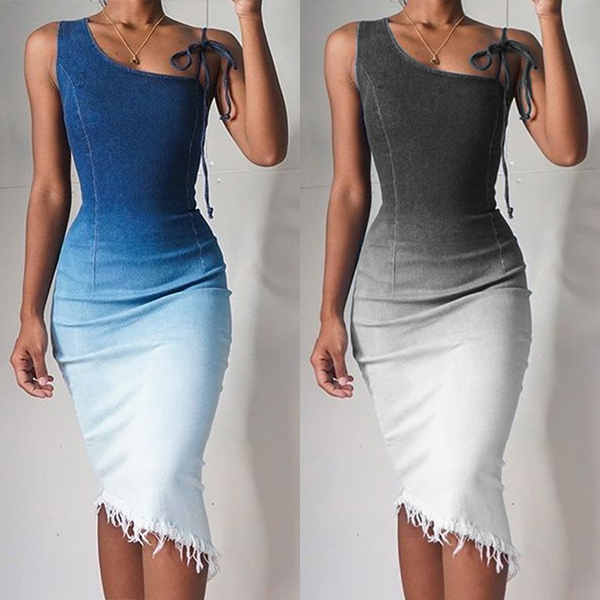 You can easily be the focus when you dress yourself up with this dress. One-shoulder style,finished with a super-fit silhouette,this dress can showcase your slender figure. Moreover,the color gradient and irregular tassel hem design will make this piece look more distinctive and attractive. For your fancy events,this dress can be your wise choice.