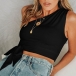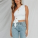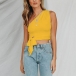 Sexy One-shoulder Sleeveless Lace-up Hem Solid Color Top