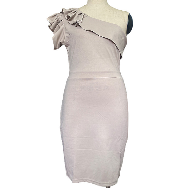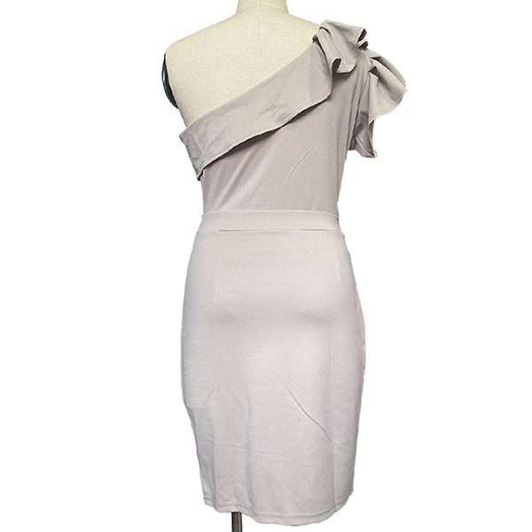 Sexy One-shoulder Sleeveless Solid Color Slim Fit Ruffle Dress
