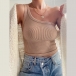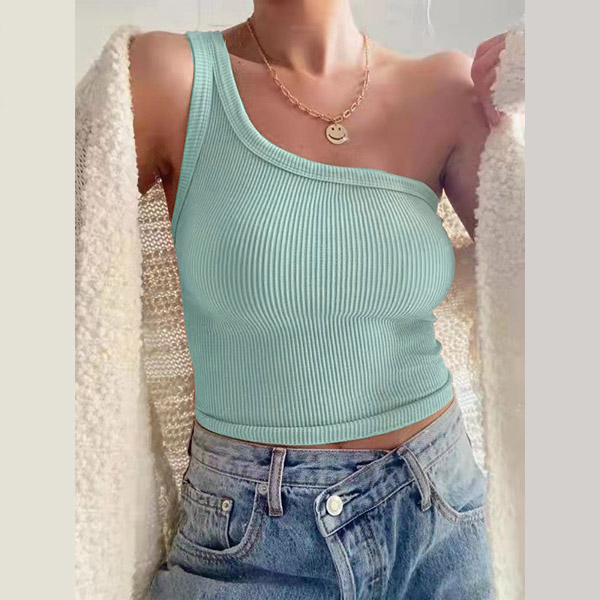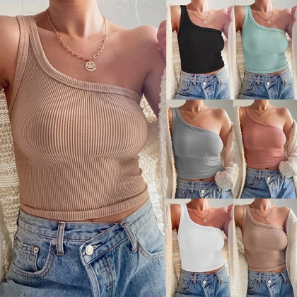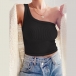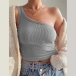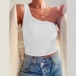 Sexy One-shoulder Sleeveless Solid Color Slim Fit Tank Top