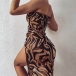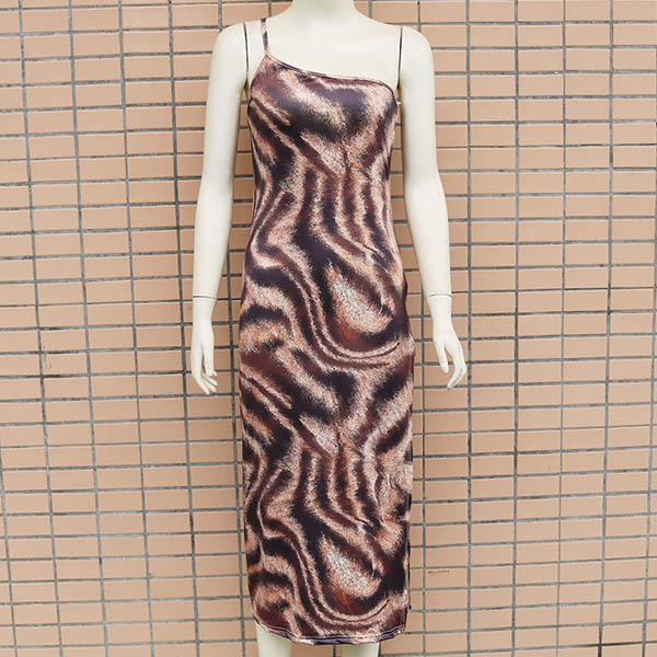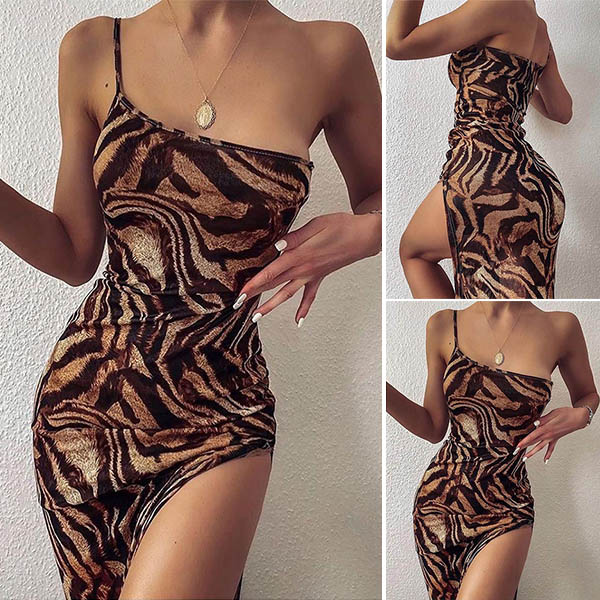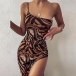 Sexy One-shoulder Slit Hem Leopard Printed Sling Dress