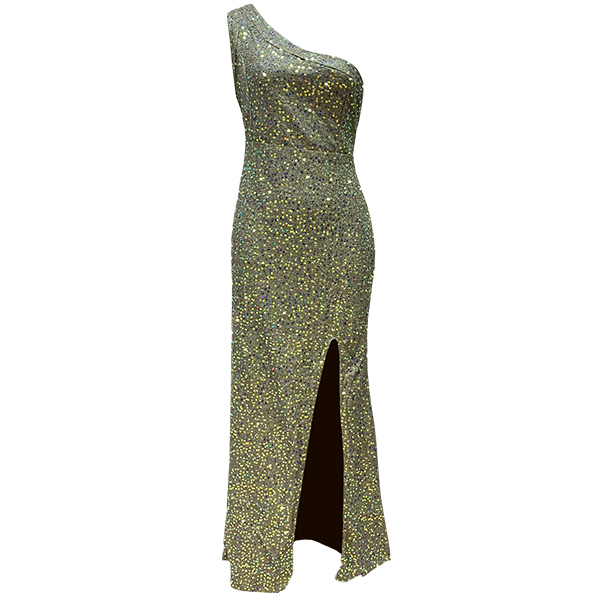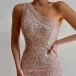 Sexy One-shoulder Slit Hem Sleeveless Slim Fit Sequin Party Dress