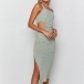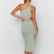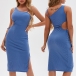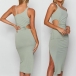 Sexy One-shoulder Slit Hem Solid Color Hollow Out Slim Fit Dress