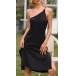 Your wardrobe is not complete if without a little black dress. So might we suggest you this piece? The flattering black tone and fit silhouette design can showcase your perfect figure,while the one-shoulder,slit hem and sling design will make you look more alluring. Save this little stunner for your fancy events!