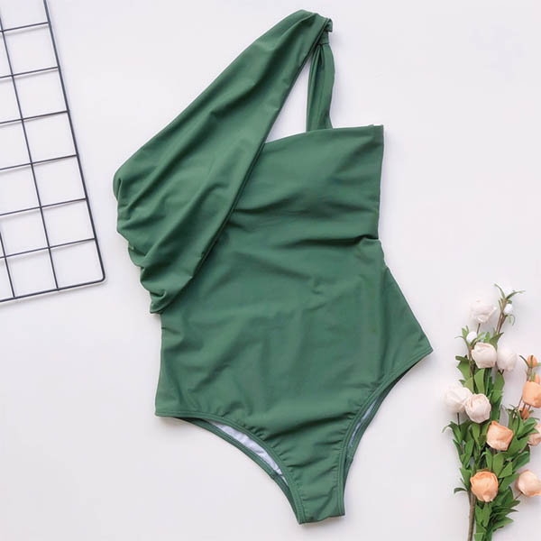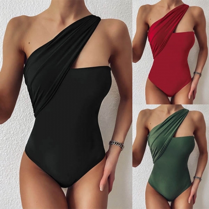 Sexy One-shoulder Solid Color One-piece Swimsuit