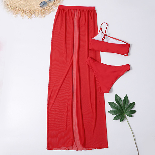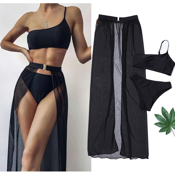 Sexy One-shoulder Top + Low-waist Briefs + Gauze Skirt Swimsuit Three-piece Set