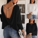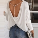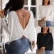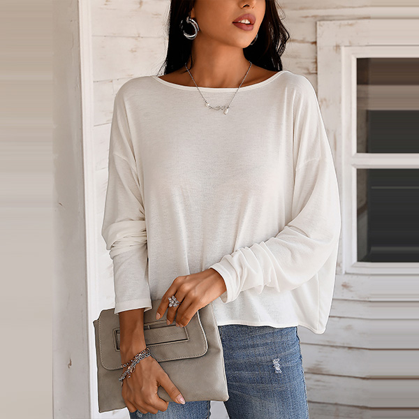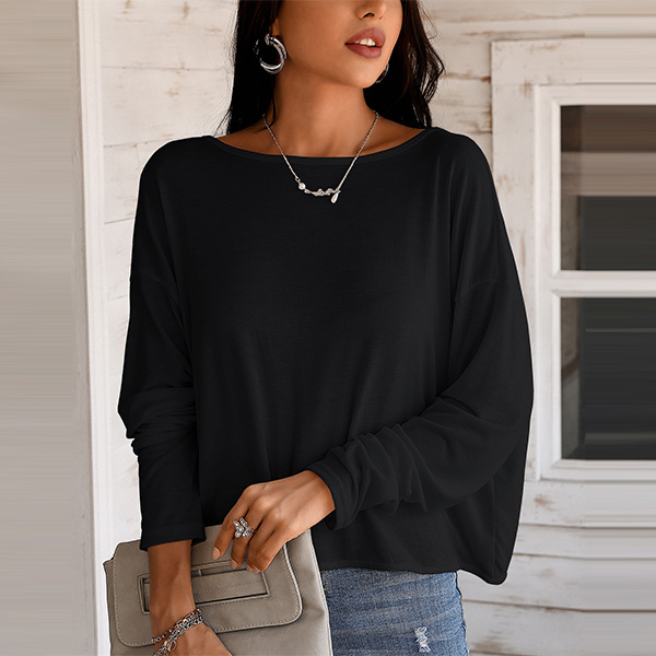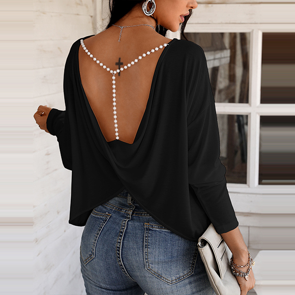 Definitely,you are sure to be the focus when you dress yourself up with this chic and unique t-shirt. The crossover backless and pearl details at the back side make this piece look so sexy and alluring. Finished with dolman sleeve,round neck and a loose silhouette,this dress can maintain the comfy as well as express your charm.