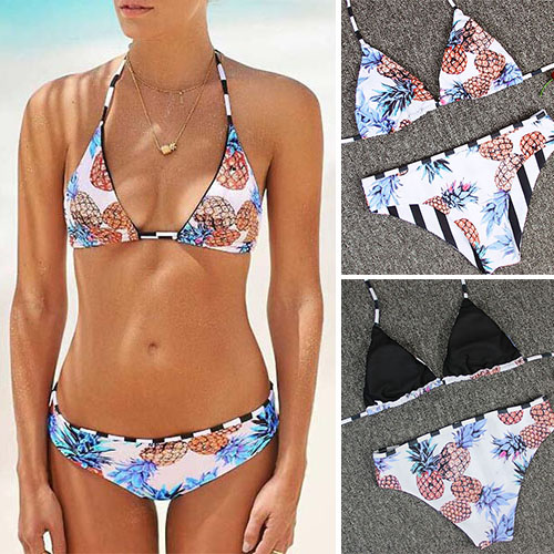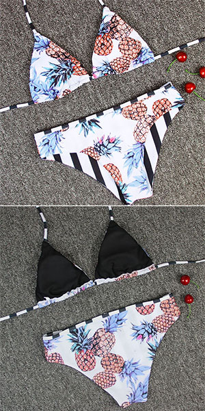 Make your beach trip more playful and unforgettable with this bikini set. Its pineapple printed pattern design makes