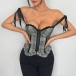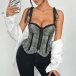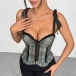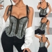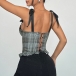 Sexy Plaid Printed Lace Spliced Sweetheart Neckline Ruffle Hemline Self-tie Shoulder Strap Cami Shirt