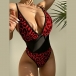 Sexy Plunge V-neck Leopard Print Backless Criss-cross Halter One-piece Swimsuit.