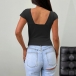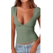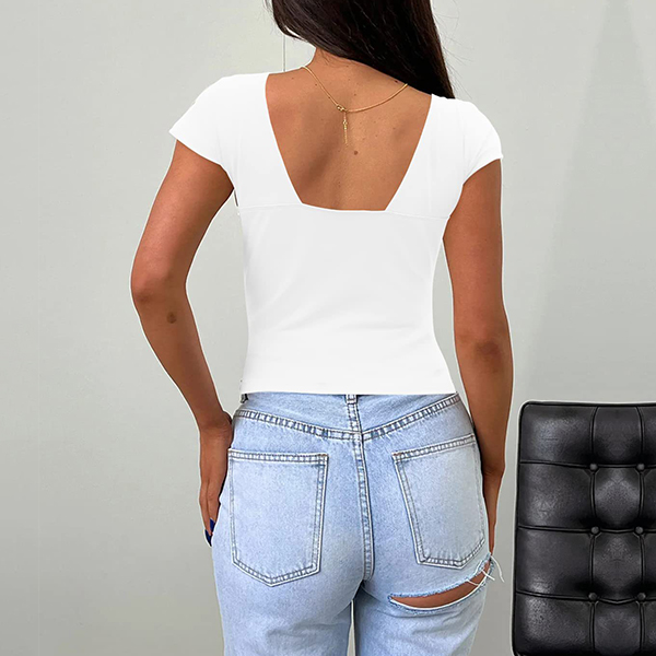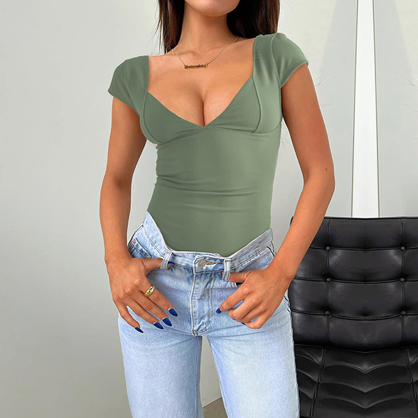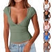 Sexy Plunge V-neck Cap Sleeve Crop Shirt