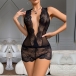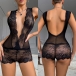Sexy Plunge V-neck Sleeveless Backless Semi-through Lace Lingerie Bodysuit