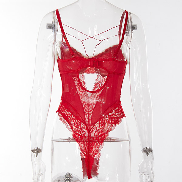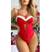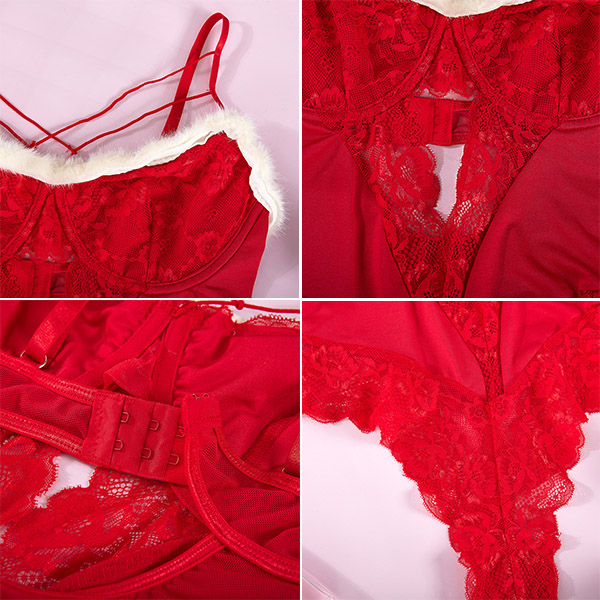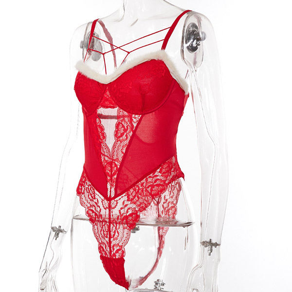 Sexy Plush Spliced Lace Front Cutout Lingerie Bodysuit for Christmas
