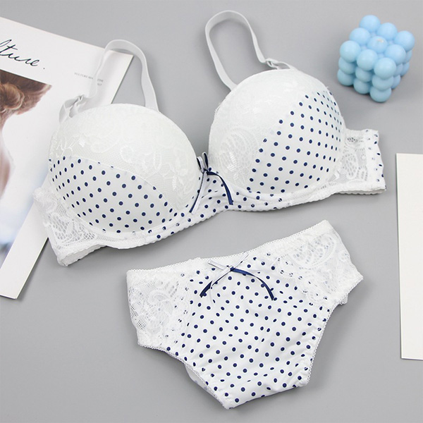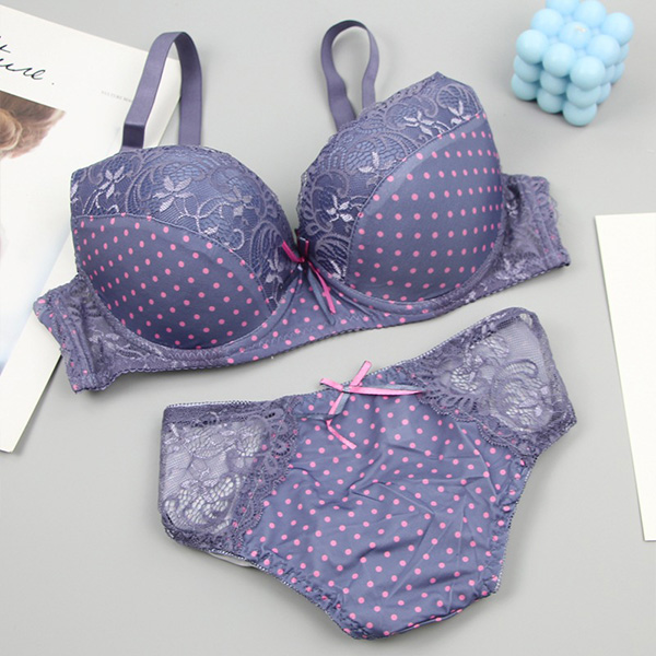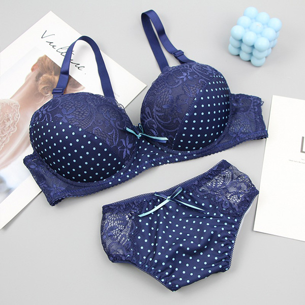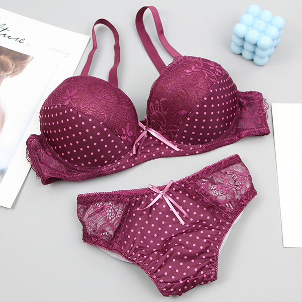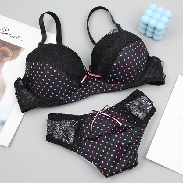 Sexy Polka-dot Printed Lace Spliced Two-piece Lingerie Set