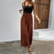 Sexy Printed Contrast Color Wide-leg Jumpsuit