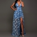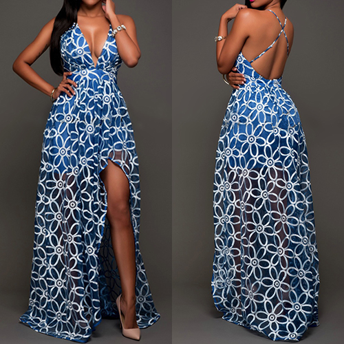For a perfect night party, we prepare this amazing maxi dress for you. This dress features chic printed, deep v-neck, sleeveless and