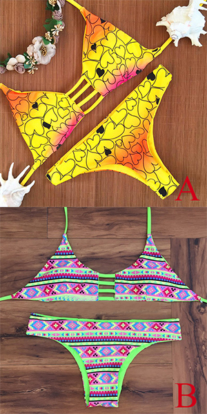 Many kinds of picture printed makes this bikini set very distinctive. With beautiful and exquisite