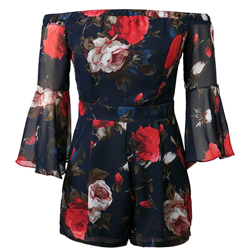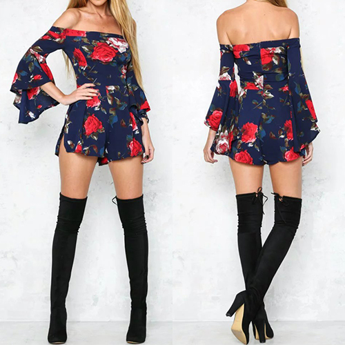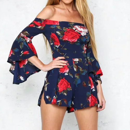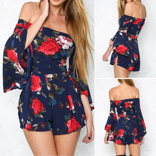 Boasting pretty floral printed, with off shoulder, backless and bell sleeve design, which
