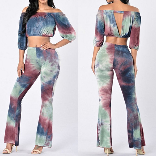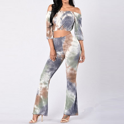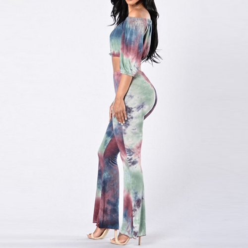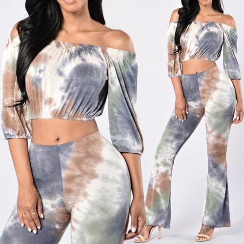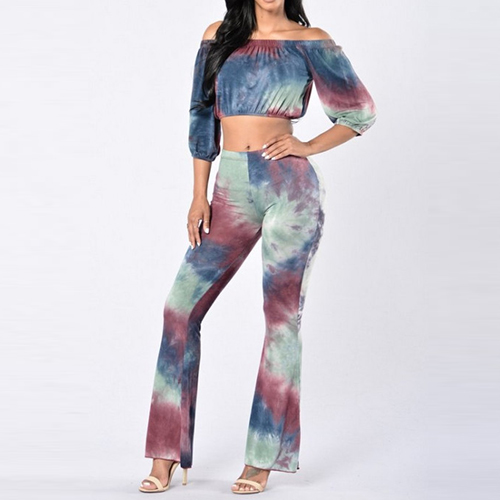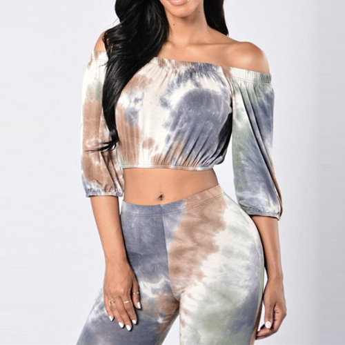 let you get more attentions. Including a crop tops with off shoulder and half sleeve design, and printed pants;