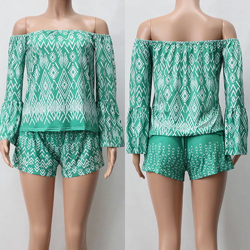 Embrace your chic and sexy style with this printed two-piece set. It includes a top with off shoulder and long sleeve design,