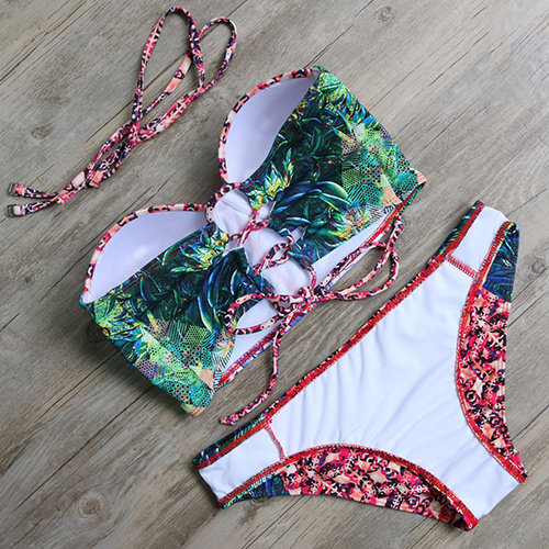 Head to the seaside in a sultry and sexy image with this bikini set. Features chic and unique printed pattern,including a bandeau