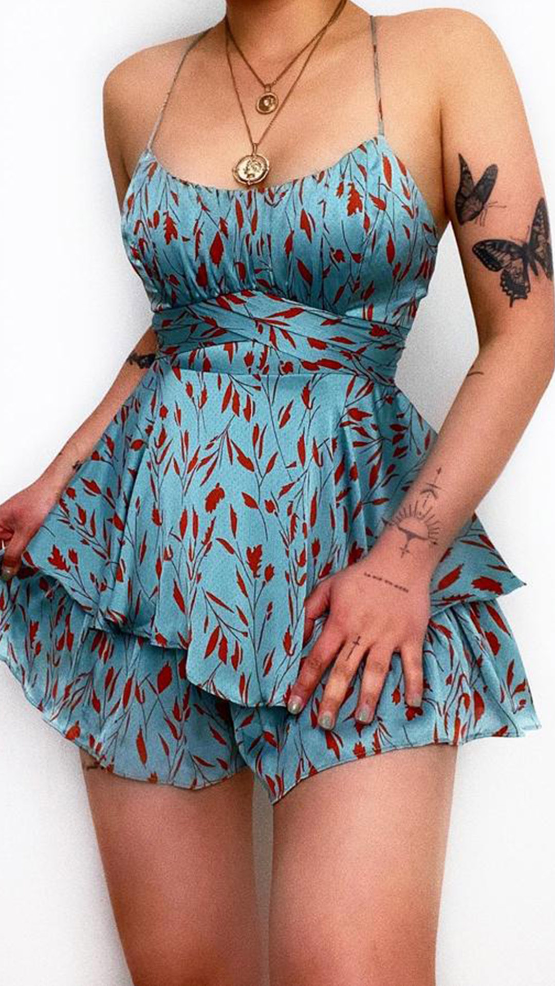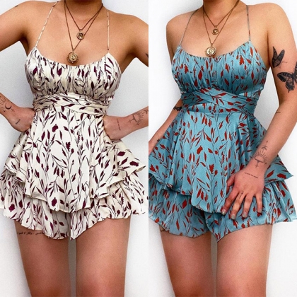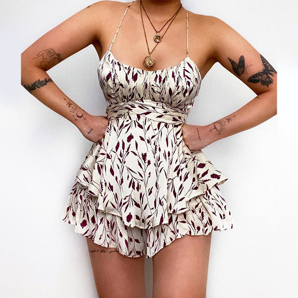 This alluring romper features a sexy square neckline, a high-rise waist, a backless design, and playful ruffle accents, creating a captivating and stylish ensemble. I like the printed pattern, and you?