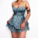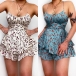 Sexy Printed Square Neck High-rise Backless Ruffle Romper