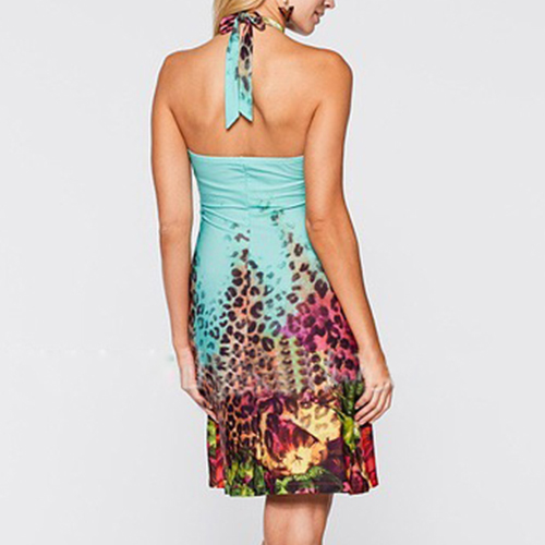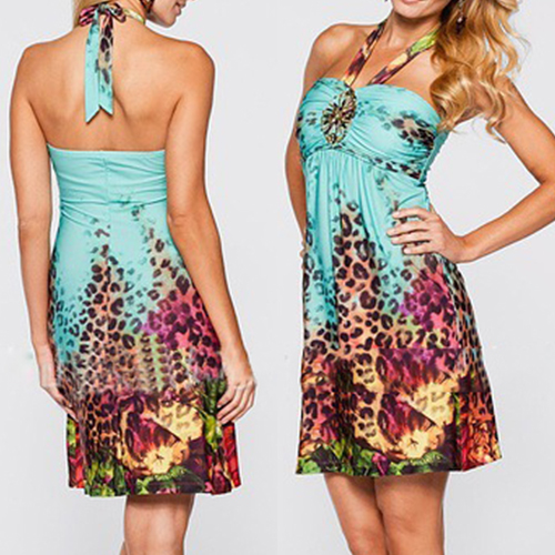 Sexy Printed Strapless Backless Beaded High Waist Halter Dress