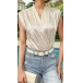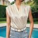 This printed bodysuit features a V-neckline, a sleeveless design, and a captivating print, creating a bold and confident look. We could pair it with high-waisted jeans, a skirt, or shorts.