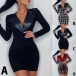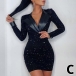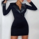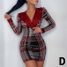 Sexy PU Leather Spliced Lapel Long Sleeve High Waist Slim Fit Printed Dress