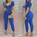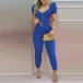 Sexy Puff Sleeve Square Collar High Waist Solid Color Jumpsuit
