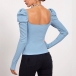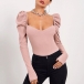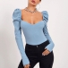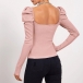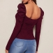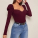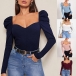 Sexy Puff Sleeve Square Collar Solid Color Slim Fit T-shirt