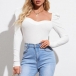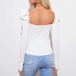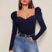 If you are looking for a different style t-shirt,then you can make your eyes focused on this piece. It comes with a solid color,the super-fit silhouette design can showcase your perfect body-line,while the puff sleeve and square collar design will make this piece look more attractive. We suggest you matching with your high waist bottoms to finish a sassy look.