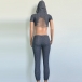 The crop top of this two-piece set is designed with a round neckline and short sleeves while it is styled with a hood and a strappy back.