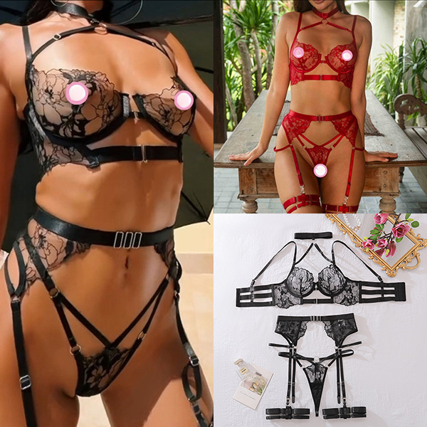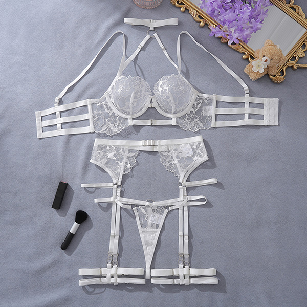 Sexy Rhinestone Cutout Lace Three-piece Lingerie Set
