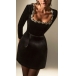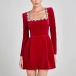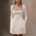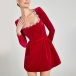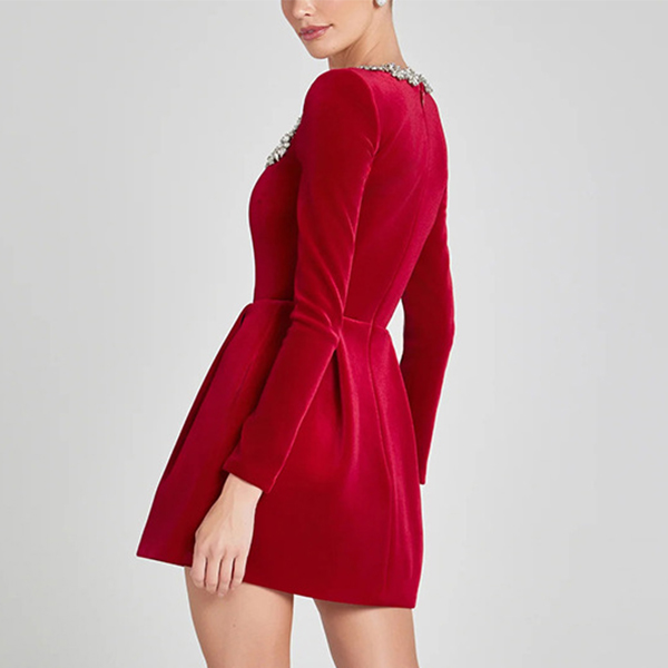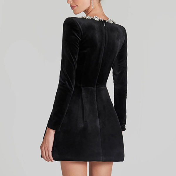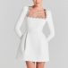 Sexy Rhinestone Floral Decoration Square Neck Long Sleeve Side Pockets Mini Dress